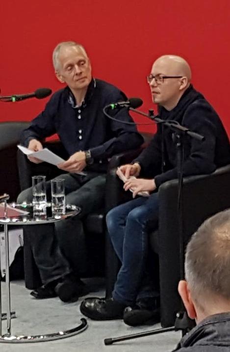 Ich habe gestern in Leipzig Andreas Brandhorst auf der Bühne gesehen (links im Bild). Der Moderator hat ihn darauf angesprochen, dass er ja nicht nur seit den 70ern Autor ist, sondern auch viel übersetzt hat, unter anderem Terry Pratchett. Brandhorst meinte daraufhin, dass es sehr hilfreich beim Übersetzen sei, wenn man auch gleichzeitig Autor ist. Wir konnten ja sehen, wozu das führt (ich sage nur das Ende von Das Erbe des Zauberers)...